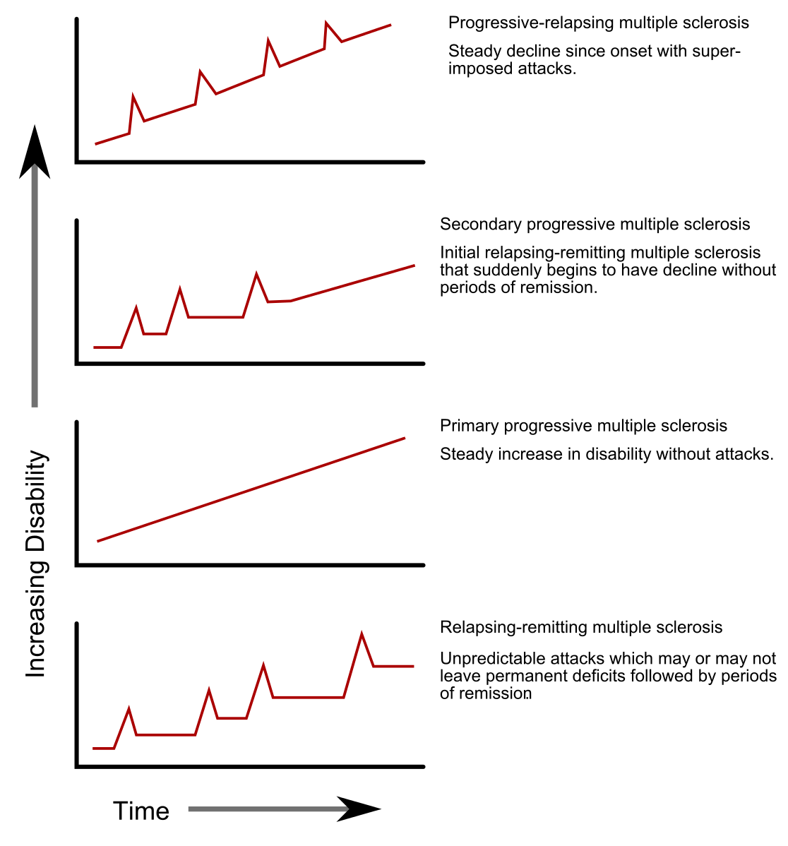 - In addition to this, they have superimposed flare ups or relapses leading to rapidly progressing disability.